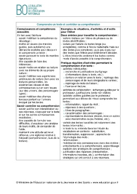 Savoir contrôler sa compréhension o reformulation, rappel du récit ;