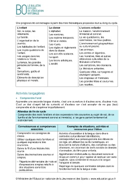 Une progressivité est ménagée à partir des trois thématiques proposées tout au long du cycle.