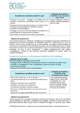 des statuts différents dans les jeux vécus et respecter les règles. Au cours du cycle, l’élève