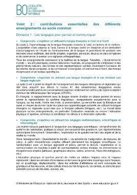 Tous les enseignements concourent à la maîtrise de la langue. Toutefois, « Questionner le