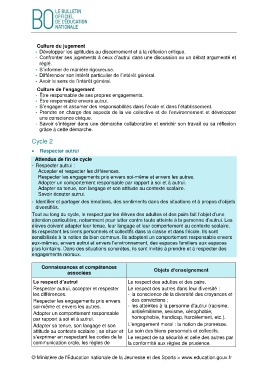 Tout au long du cycle, le respect par les élèves des adultes et des pairs fait l’objet d’une
