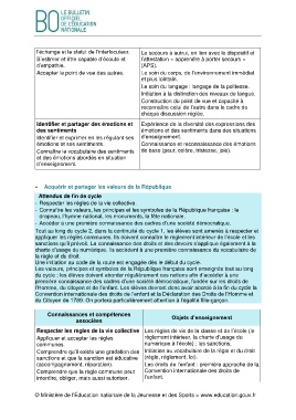 l’Homme, du citoyen et de l’enfant. Les élèves devront donc avoir abordé à la fin du cycle la