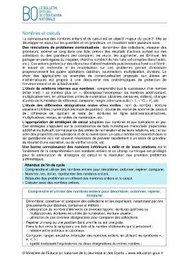 d’unités de numération de référence, comparer, ranger, itérer une suite (+ 1, + 10, + n), etc.
