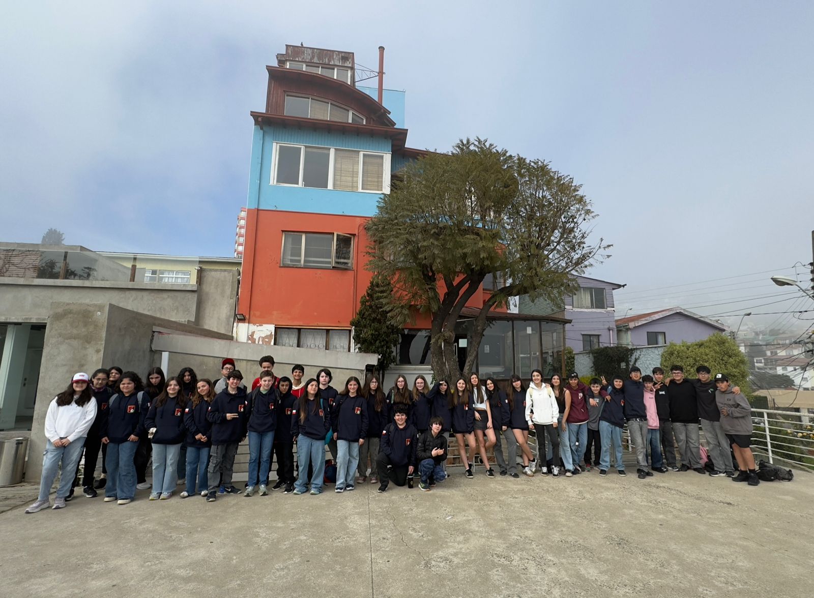 La siguiente jornada comenzó con un desayuno en las cabañas antes de emprender el viaje hacia la ciudad puerto de Valparaíso. Allí, los estudiantes visitaron la casa museo La Sebastiana, otro de los hogares de Neruda, y recorrieron los tradicionales ascensores de los cerros Concepción, Alegre y Reina Victoria.