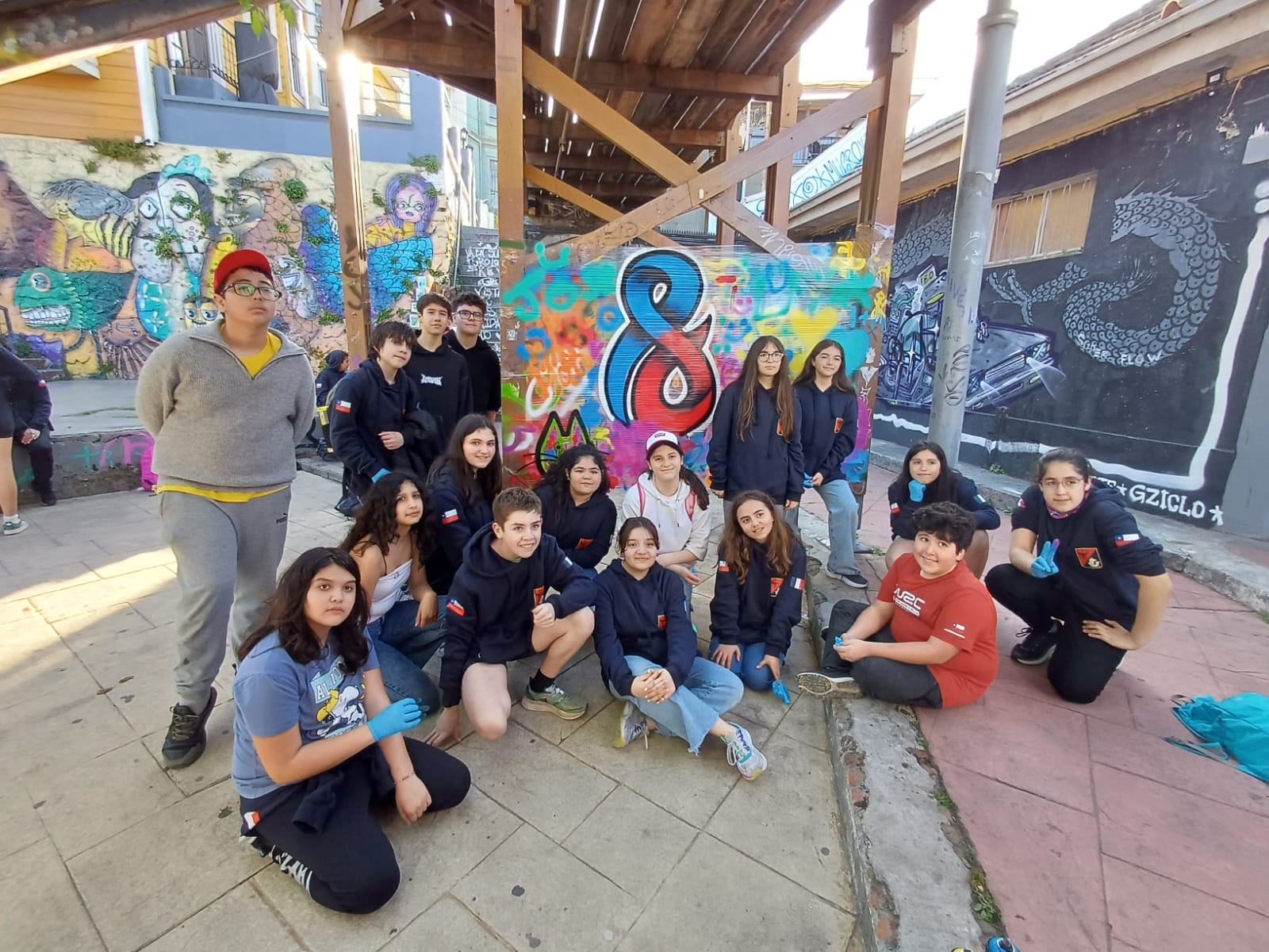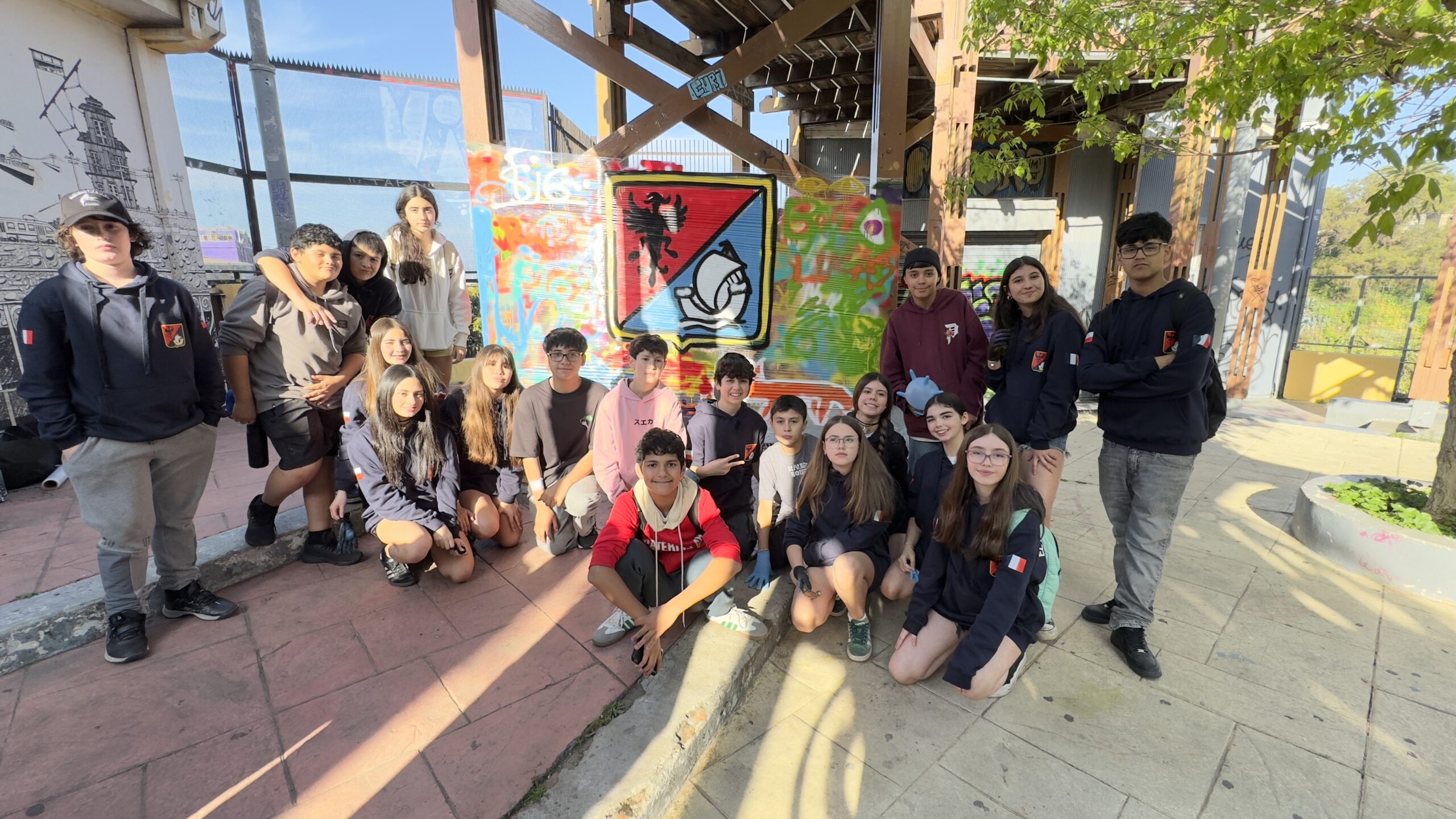 El recorrido continuó con un tour guiado sobre muralismo y graffiti, en el cual pudieron observar algunos de los murales más representativos e icónicos de la ciudad. Como cierre, los alumnos participaron en la creación de sus propios grafitis, donde expresaron, a través del color y la forma, las experiencias y aprendizajes adquiridos durante el día.