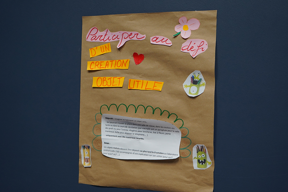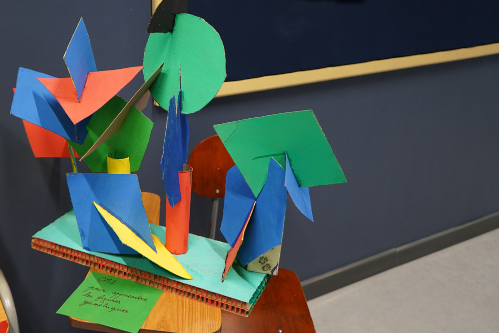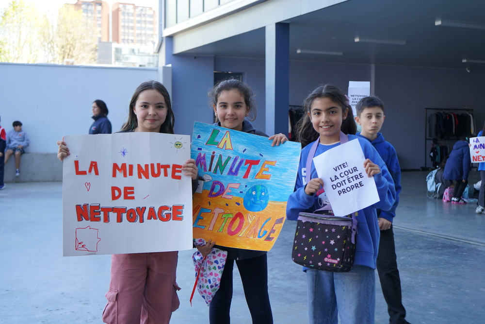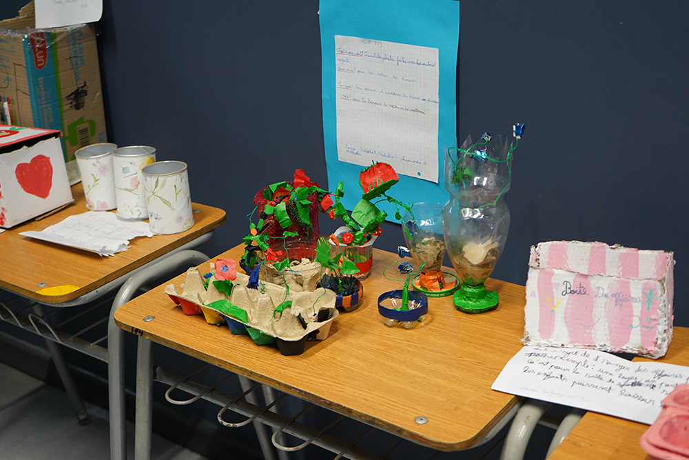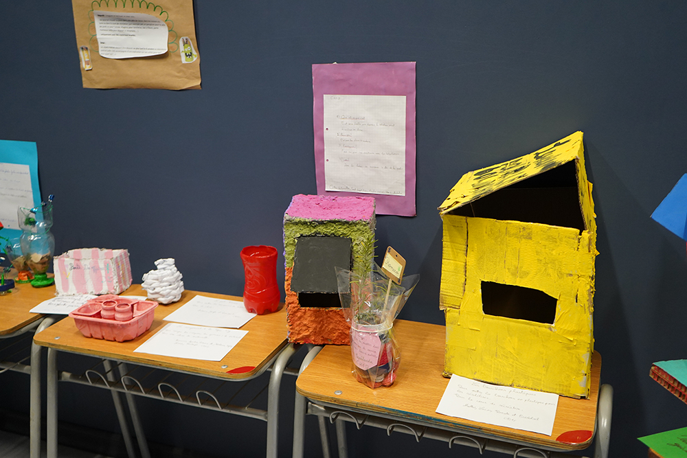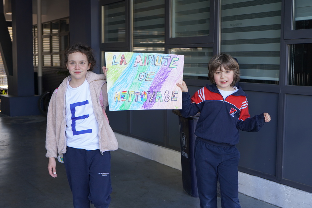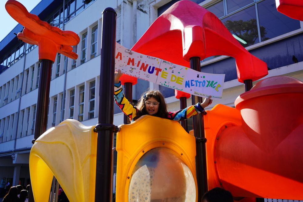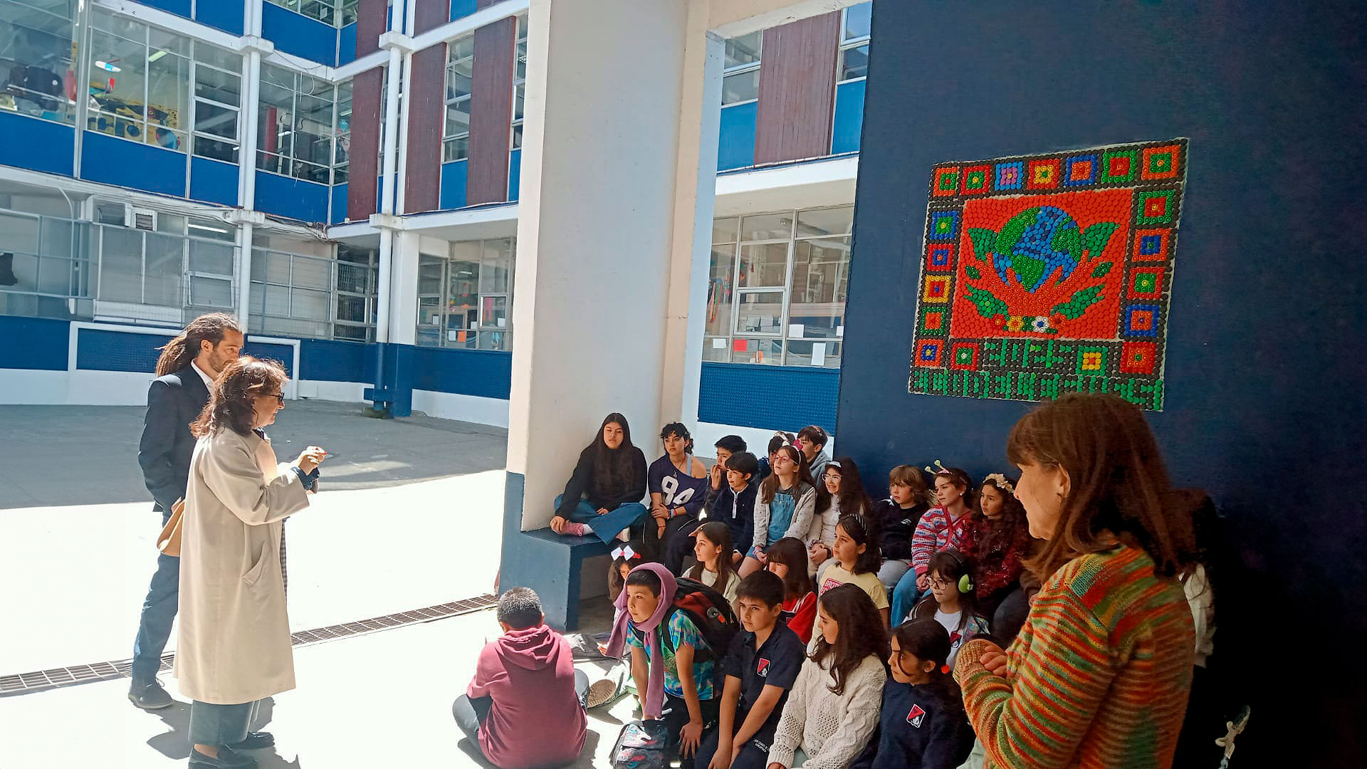 Junto a la artista Marlene Alfaro, dieron vida a un mural confeccionado con tapas recicladas, que representa el logotipo creado hace cuatro años por los eco-delegados de 2021. La Rectora del establecimiento, Mme. Monticino, y el Director de Primaria, M. Del Jesus, participaron en la inauguración oficial de esta obra colectiva que hoy adorna el patio del colegio, simbolizando el trabajo en equipo y la responsabilidad ambiental.