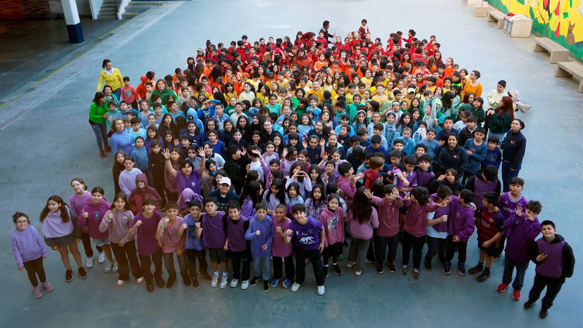 Finalmente cabe destacar uno de los desafíos más creativos de la semana: los niños y niñas de primaria participaron en la creación de un gran mosaico en el patio, formando un arcoíris gigante con materiales reciclados y vestuarios de colores, reflejando el espíritu de unión, respeto por la naturaleza y compromiso colectivo que caracterizó toda la celebración.