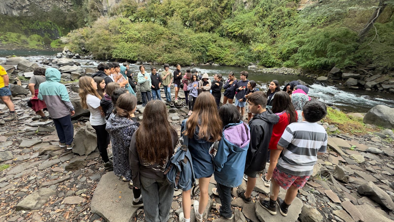 En medio de paisajes naturales imponentes, cada experiencia se transformó en una oportunidad para crecer tanto a nivel individual como colectivo. La jornada finalizó con un momento especial de cierre, donde los estudiantes compartieron sus compromisos en un entorno maravilloso, consolidando así los aprendizajes vividos. Además, durante el día se realizó la entrega de las poleras, generando un sentido de pertenencia y recuerdo de esta experiencia compartida.